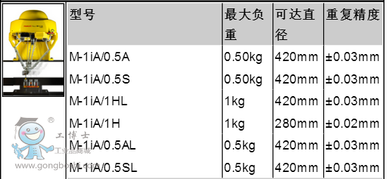 一、 產品型號:FANUC M-1iA是一款超輕量、緊湊的6軸結構,并設計有平行連桿結構的智能拳頭機器人,可以實現各種方向的安裝,并配有適應復雜裝配作業的三軸手腕,非常靈活。