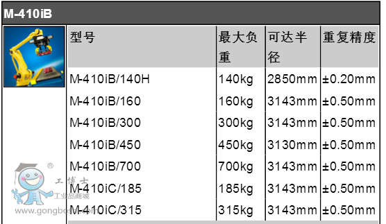 發那科機器人M-410iB/160*大負重160kg可達半徑3143mm應用廣泛