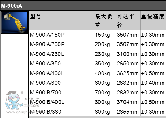 M-900iA是一款可搬運重物的機器人,其可搬運重達260kg-600kg的物體。