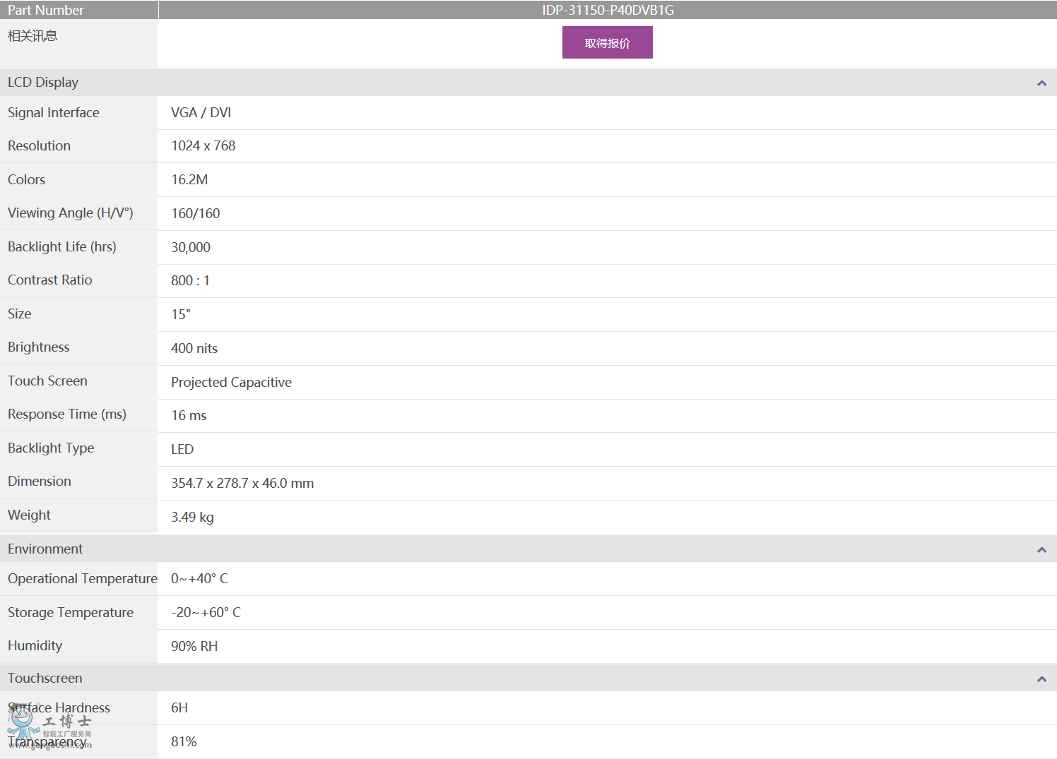 研華工控機 IDP-31150 專業級純平觸控 15"工業 ProFlat 觸控顯示器 |