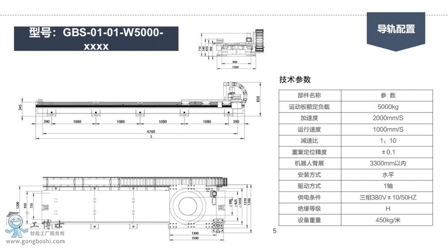工博士 GBS-01-01-W5000-xxxx 第七軸機器人導軌