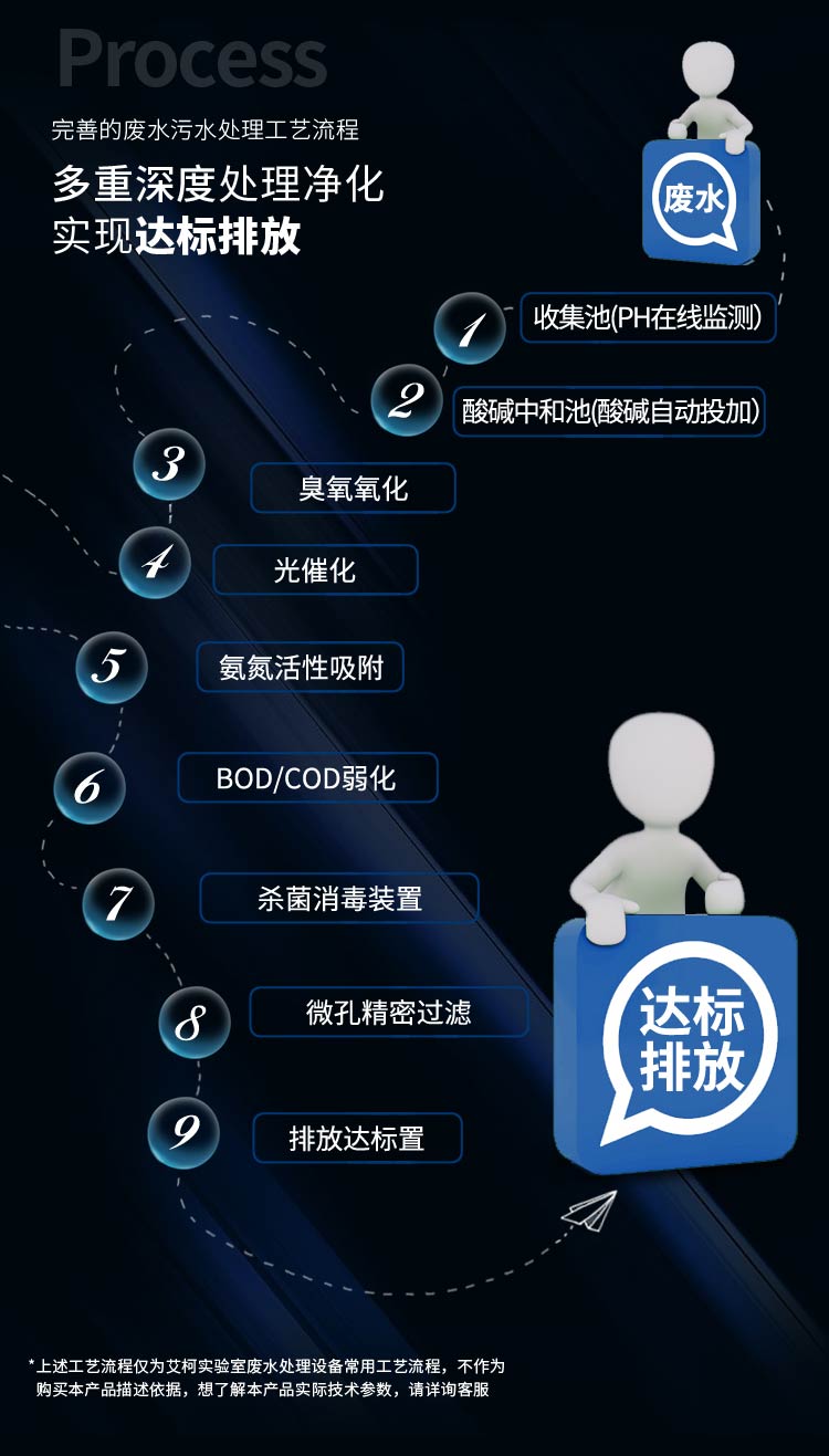 我們的實驗室污水廢水處理設備可用于制藥,煙草,有色金屬,新能源,建材等各行業的各類廢水處理,滿足廢水排放要求。實驗室廢水處理設備咨詢采購請聯系艾柯實驗室廢水處理設備廠家。