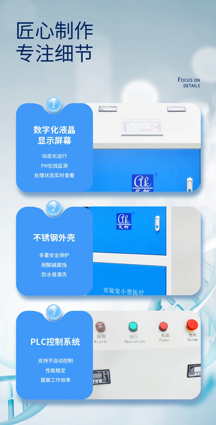 艾柯實驗室廢水處理設備可用于各種行業與各種類型的實驗室廢水污水綜合處理,設備處理效果好,效率高。艾柯專注污水處理領域20年,有豐富和成熟的技術經驗與資質實力,并且為每一位用戶提供完善周到的售后服務,設備都是工廠生產銷售,咨詢訂購請聯系艾柯實驗室廢水處理設備廠家。