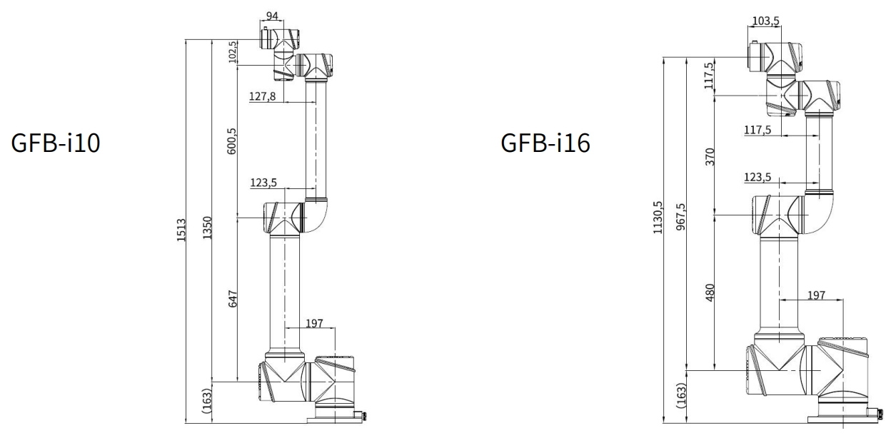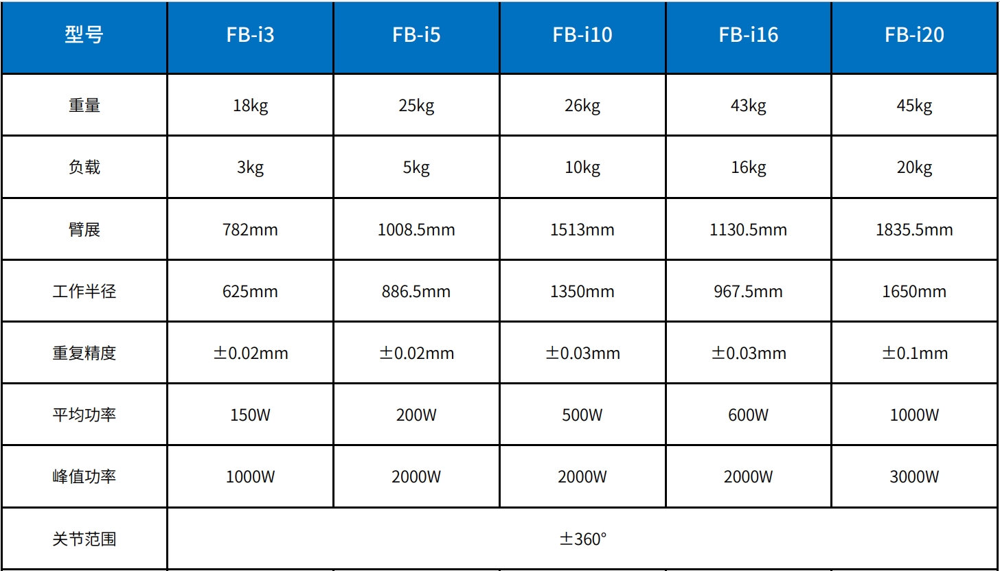 防爆系列協作機器人 GFB防爆系列協作機器人具有3-16kg不同負載能力,是一款為滿足更高防護標準的工作環境 需求而開發的擁有高安全性防爆技術的協作機器人產品。 適用領域 石油 化學工業 醫藥 噴涂 軍工 特性優點 安全可靠 高精度 系統開放 簡單易用 GBS FB-i3 負載:3kg 重量:16kg 重復精度:±0.02mm 工作半徑:625mm GBS FB-i5 負載:5kg 重量:24kg 重復精度:±0.02mm 工作半徑:886.5mm GBS FB-i10 負載:10kg 重量:38.5kg 重復精度:±0.03mm 工作半徑:1350mm GBS FB-i16 負載:16kg 重量:38kg 重復精度:±0.03mm 工作半徑:967.5mm GBS FB-i20 負載:20kg 重量:63kg 重復精度:±0.1mm 工作半徑:1650mm